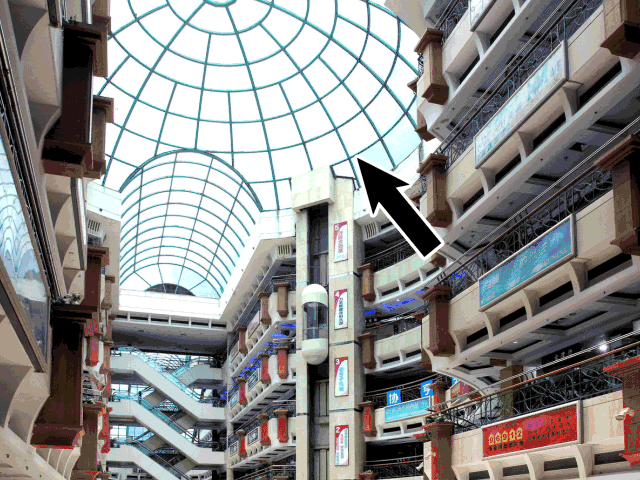 这种聚光玻璃天花带来的好处是可以增加大量的自然采光,但坏处也很明显,就是阳气太足了。