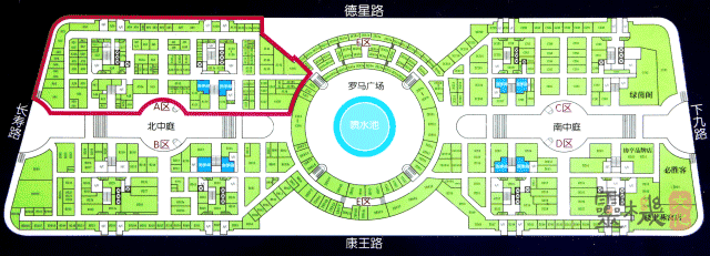 二是整个广场的高度比东西两边的德星路和康王路都要高,就像一个平地上的孤岛,相对于车水马龙的路来说更是阳气十足。
